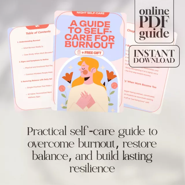 Feeling exhausted, drained, and overwhelmed by constant demands? A Guide to Self-Care for Burnout is a thoughtfully crafted digital eBook designed to help you break free from the cycle of burnout and reclaim your energy, balance, and joy. This powerful resource gently walks you through understanding what burnout truly is, how it affects your mind and body, and how to heal with practical, sustainable self-care strategies. Whether you’re recovering from workplace stress, emotional exhaustion, or simply seeking healthier routines, this guide will support your journey back to wellness.
