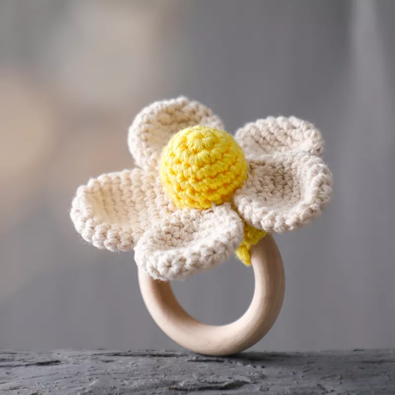 Introduce your baby to a world of natural comfort and early learning with this adorable baby flower teether rattle. Thoughtfully designed with a charming flower shape, this wooden crochet rattle combines soothing teething relief with playful sensory discovery. Its soft, natural look and gentle sound instantly capture your baby’s attention while offering a calming experience during early development stages. Simple, sweet, and timeless, this toy is made to be loved from the very first touch.