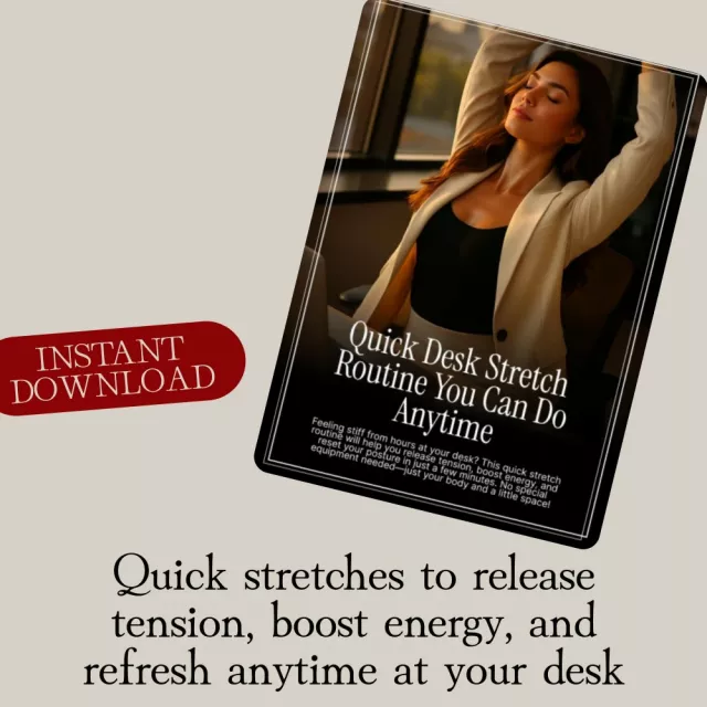 Feeling stiff, sore, or drained after hours at your desk? The Quick Desk Stretch Routine You Can Do Anytime is the perfect digital download to help you release tension, boost circulation, and improve posture—all without leaving your chair. Whether you work from home, in an office, or on the go, this easy-to-follow guide gives you simple stretches designed to keep your body refreshed and your mind clear.